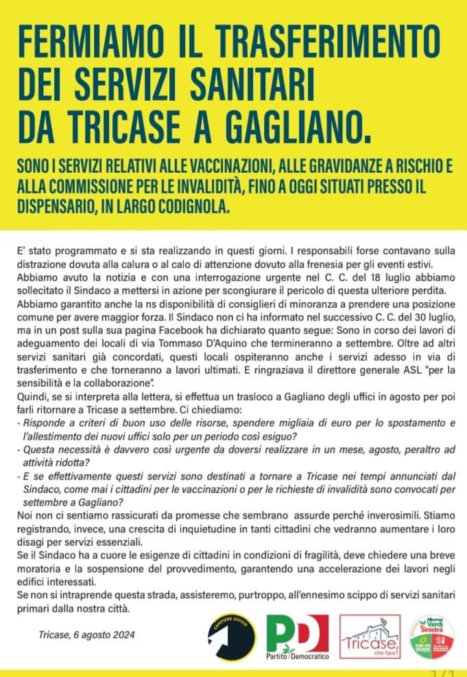 -E se effettivamente questi servizi sono destinati a tornare a Tricase nei tempi annunciati dal Sindaco, come mai i cittadini per le vaccinazioni o per le richieste di invalidità sono convocati per settembre a Gagliano?