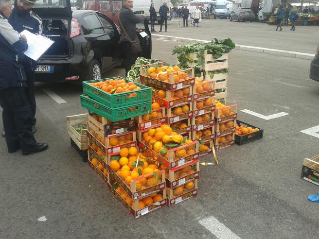 In entrambi gli interventi gli agenti hanno accertato la presenza sul suolo pubblico di decine di cassette di frutta e verdura di vario genere, esposte direttamente sulla sede stradale e poste in vendita, senza rispettare le più elementari norme igienico sanitarie, da parte di soggetti del tutto privi di autorizzazione commerciale.