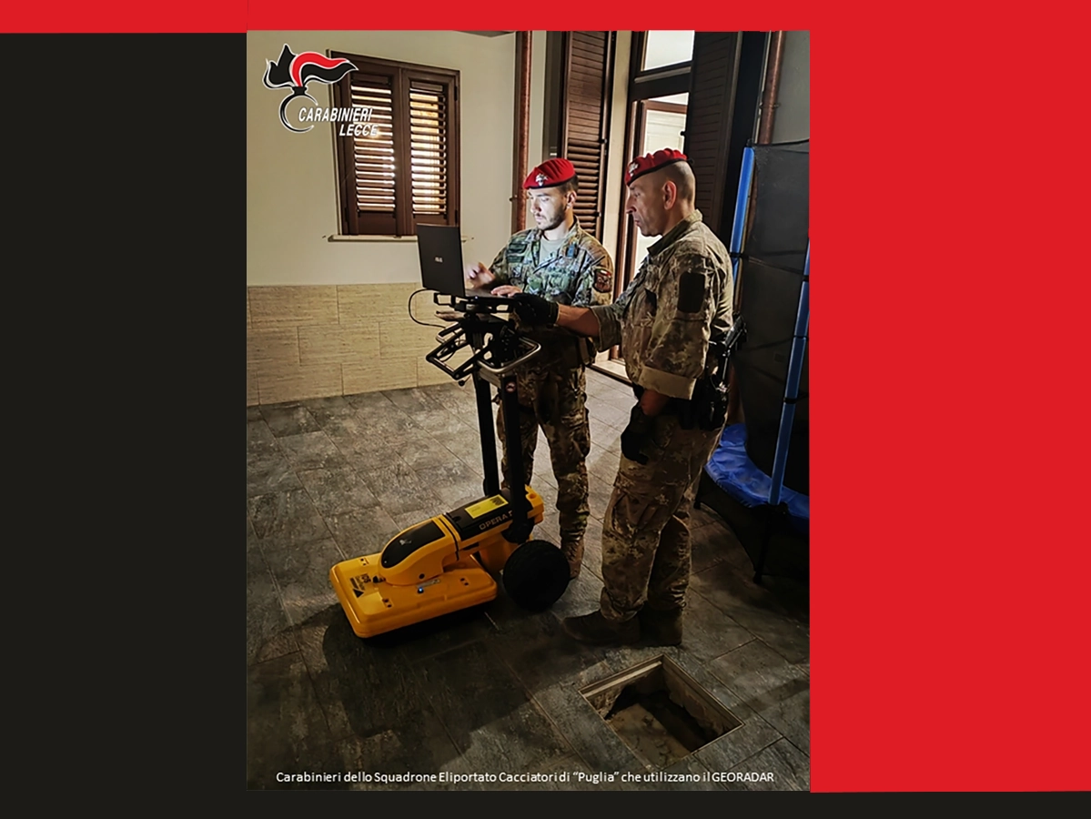 Grazie a questa tecnologia, i carabinieri dello Squadrone Eliportato Cacciatori di “Puglia” hanno individuato nascondigli, depositi e intercapedini sotterranee, rendendo più efficace l’attività di ricerca.