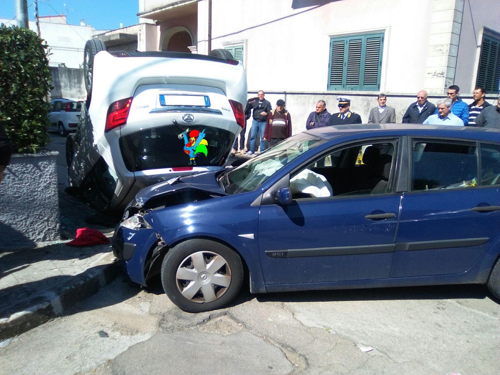 Violento scontro tra due auto in pieno centro abitato, ad uno degli incroci sulla via per Presicce. Si tratta di una Renault Megane e di una Toyota Yaris, condotte da un uomo del posto e da una donna residente nel ravennate.