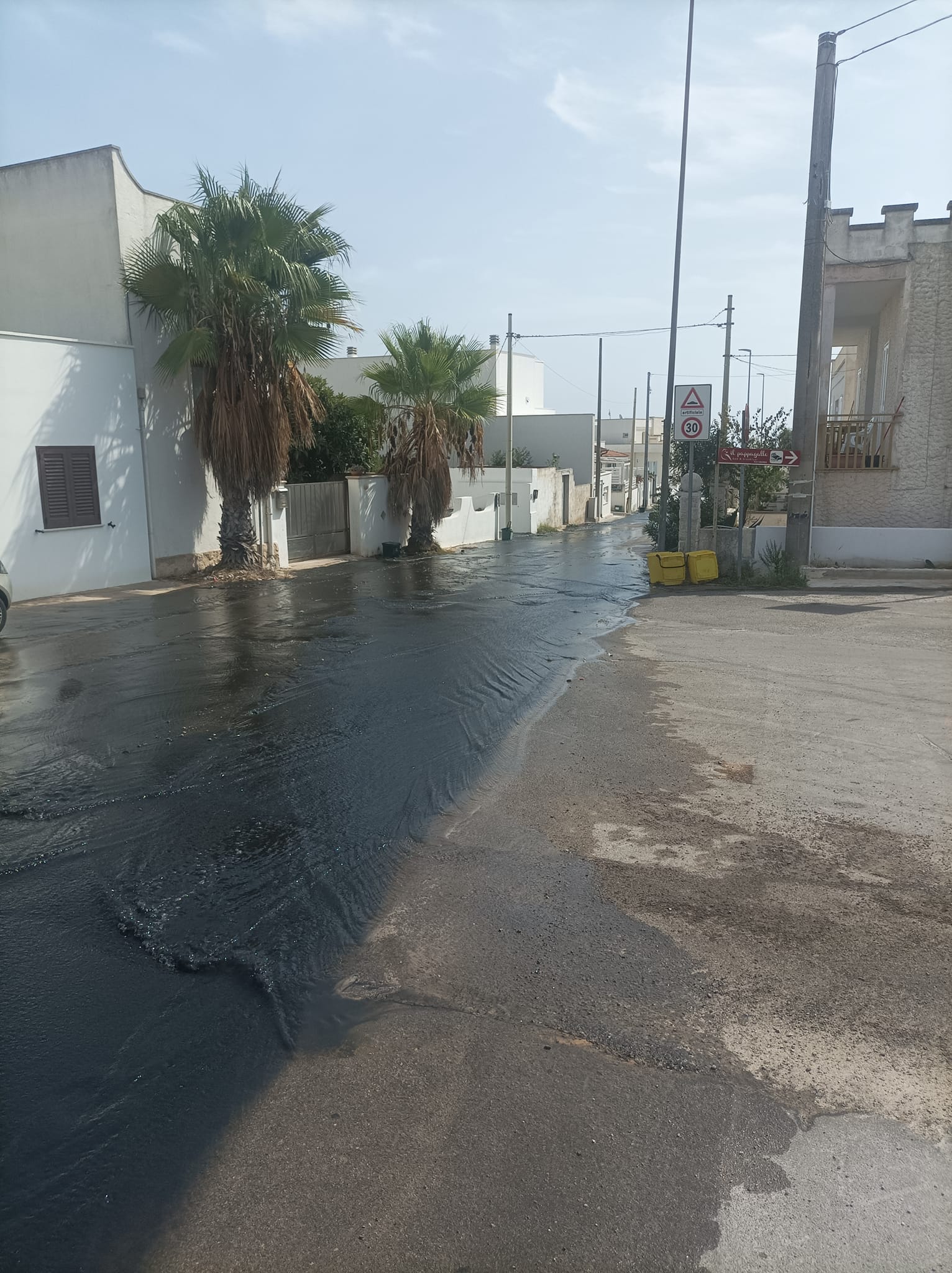Sversamenti della condotta fognaria attraversano la marina dopo aver rotto l’asfalto. Pare che il problema sia sorto nella zona di Terragreci, uscita in direzione Castrignano del Capo, nei pressi dell’Avamposto Militare