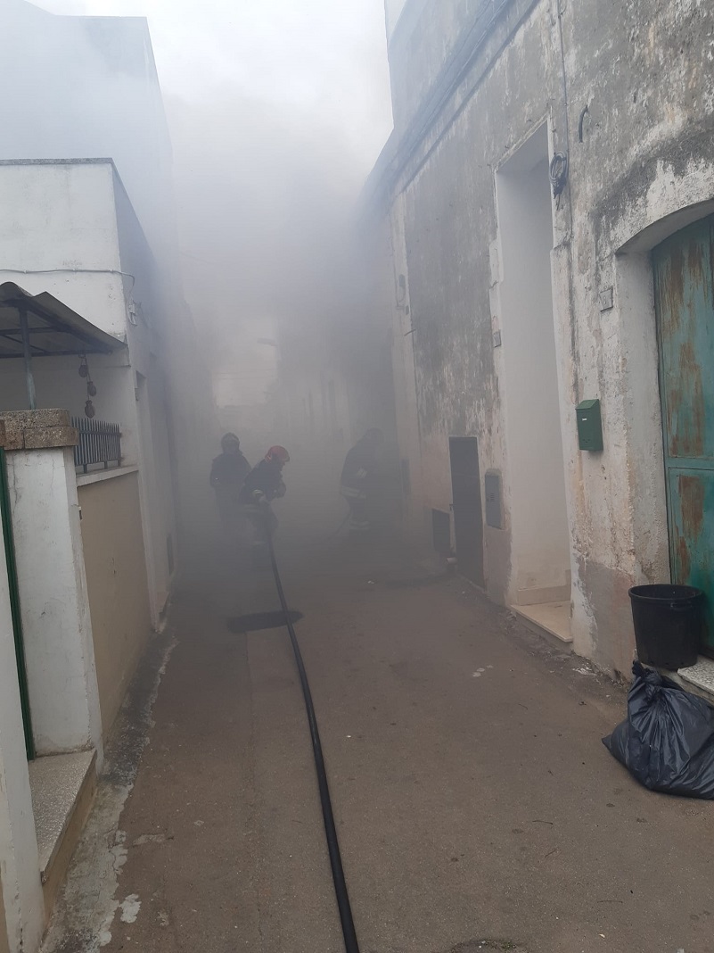 Incendio poco dopo le 11 in via Oberdan a Tiggiano.