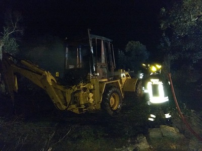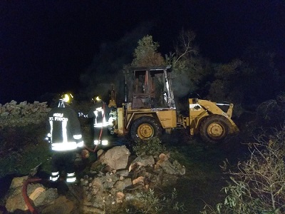 Incendio di una ruspa nella Marina di Tiggiano, in Zona Torre Nasparo