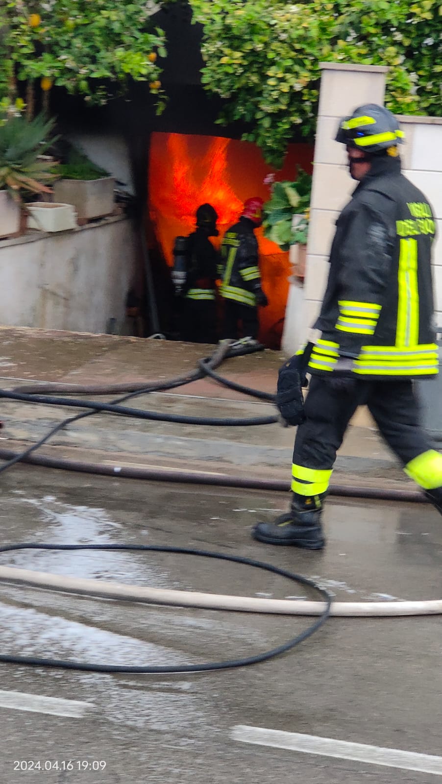 I pompieri sono ancora all’opera per spegnere le fiamme.