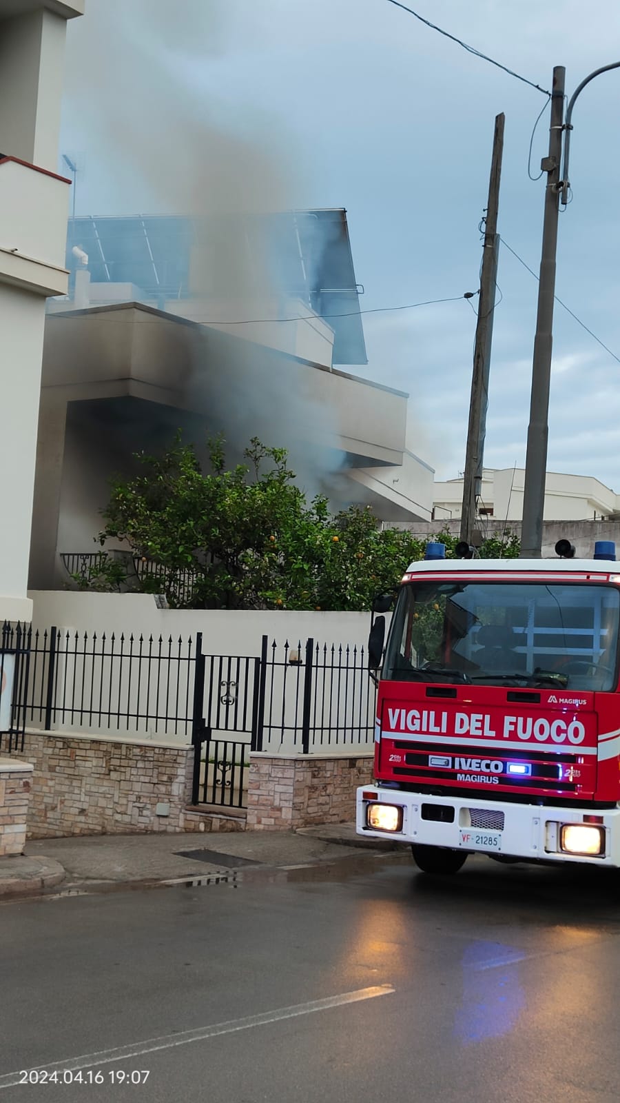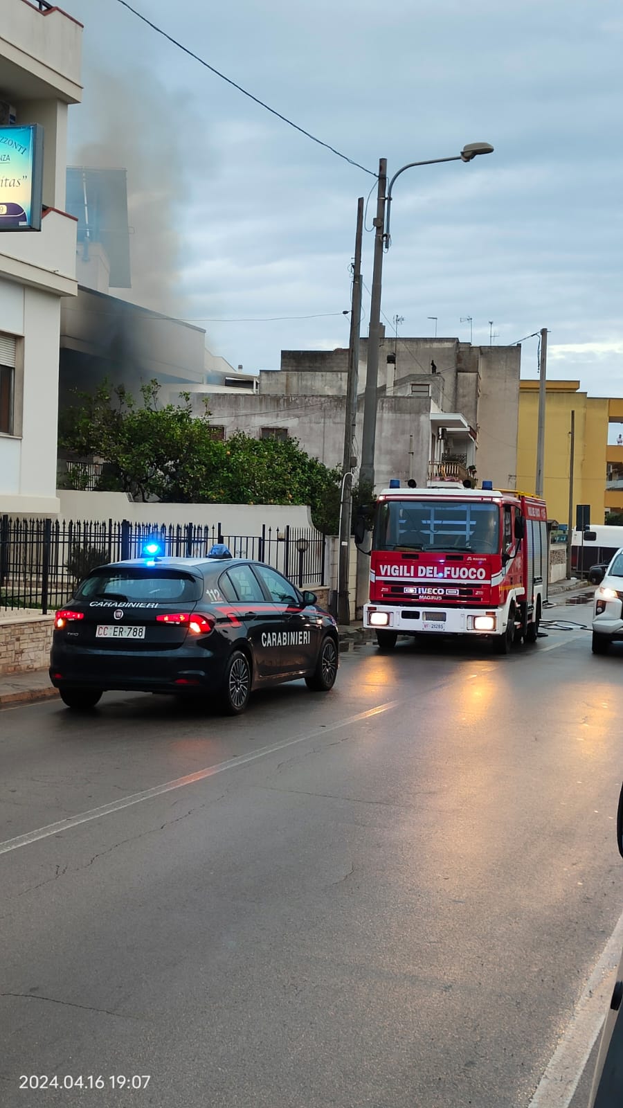 Un incendio ha impegnato da prima del tramonto di ieri per delle ore, fino alla notte, i vigili del fuoco in via Galvani, in prossimità della Major Charitas della Caritas diocesana, a Tricase.