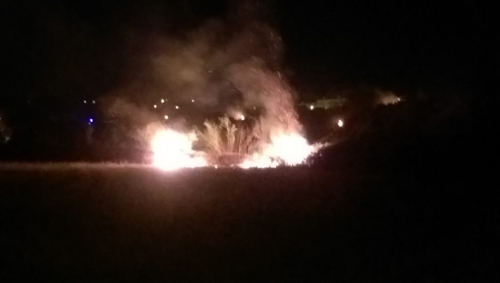 Le prime avvisaglie di incendio si sono avute al tramonto. In pochi minuti sono divampate le fiamme, alimentate da sterpaglie e canne e sospinte dal vento.