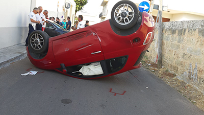 Impatto tra una VW Passat ed una Fiat 500 che si è ribaltata. In ospedale un uomo di Tricase che, però, è “solo” ferito ad un braccio