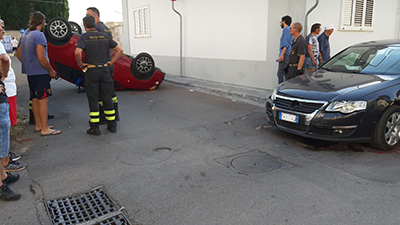 Intorno alle 18 una Volkswagen Passat e una Fiat 500 si sono scontrate all’incrocio tra via Firenze e via Siena. A quanto è dato sapere la Passat proveniva da via Siena in direzione piazza Cappuccini mentre la 500 usciva da via Firenze.