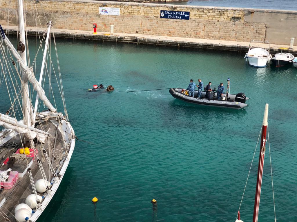 Gli uomini del reparto subacqueo della Marina Militare insieme a quelli della Capitaneria di Porto hanno recuperato un siluro risalente al periodo bellico e lungo quasi 3,5 metri.