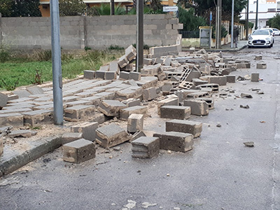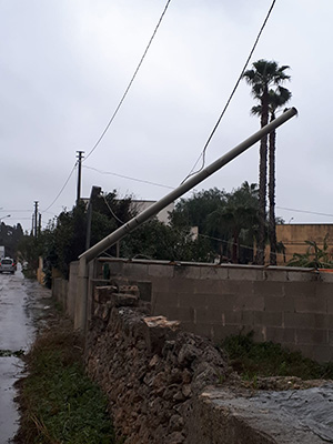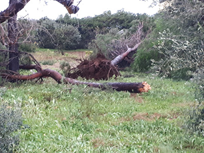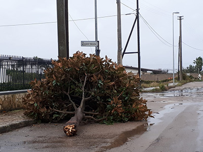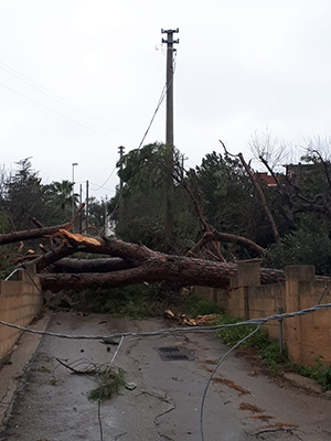 Pioggia, saette, tuoni e tanto vento, un vento impetuoso di Scirocco che ha abbattuto muretti, spaccato rami e fatto crollare interi alberi, che hanno invaso diverse strade e colpito edifici.