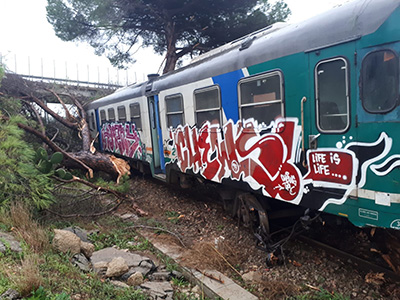 La motrice ha investito il tronco e come si vede dalle foto si è sollevata rischiando di cadere su un lato.