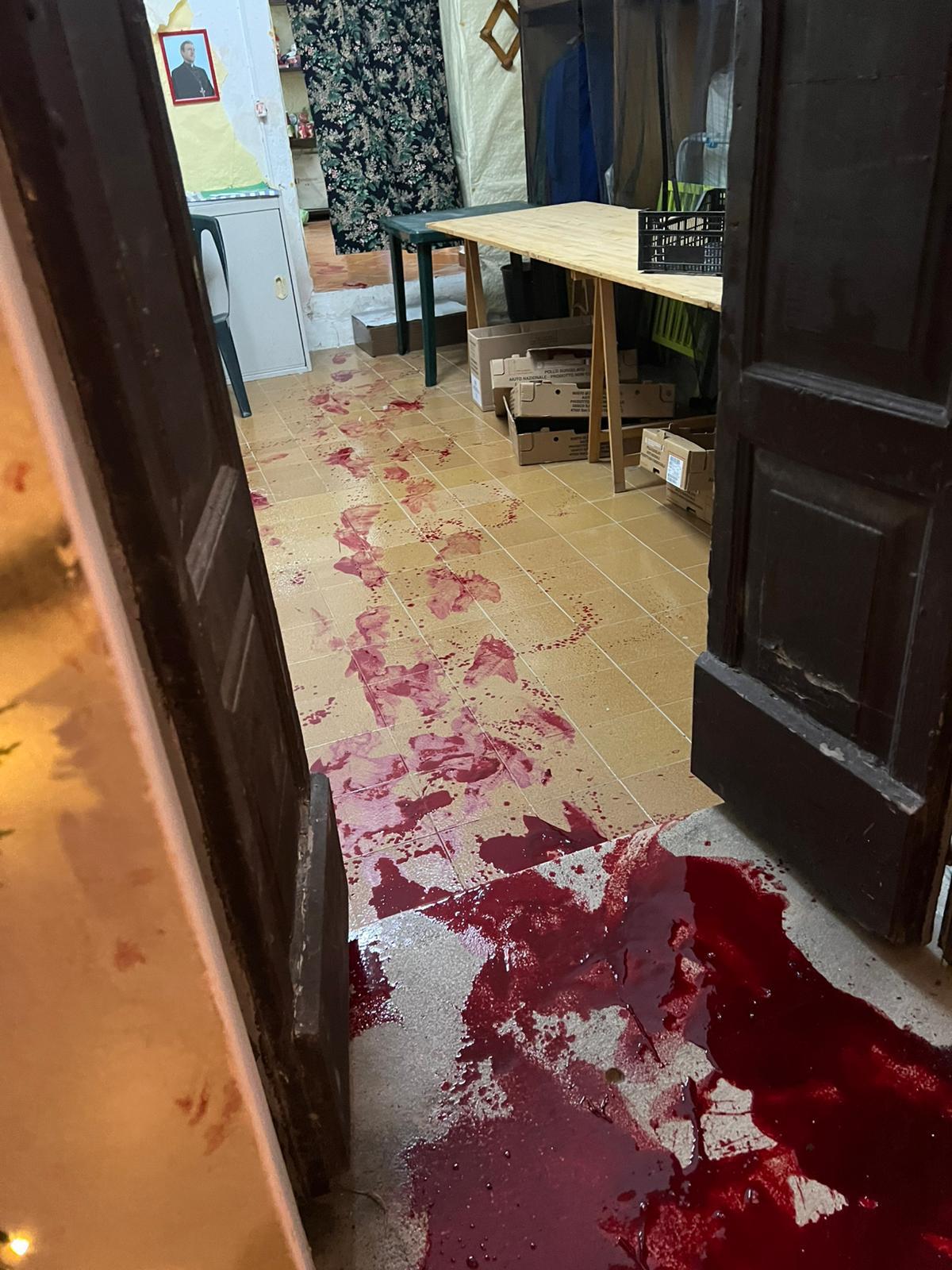 Sul posto un uomo di nazionalità straniera, ritrovato in una pozza di sangue, con ferite da taglio ad un arto inferiore e diverse contusioni alla testa. Attorno a lui e lungo il percorso da lui seguito, cocci di vetro e tante tracce ematiche, in particolare sull’uscio di un’abitazione pertinente alla locale parrocchia.
