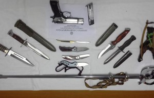 In mezzo, un’infinità di ingiurie all’indirizzo sempre della pattuglia che lo stava bloccando. La perquisizione dell’abitazione del 47enne ha sortito ulteriore sorpresa: sono stati rinvenuti e sequestrati 4 pugnali con lama (anche seghettata, tipo-“Rambo”) lunga dai 14 ai 20 cm, due bisturi confezionati, una fionda artigianale e altri 4 coltelli a serramanico.