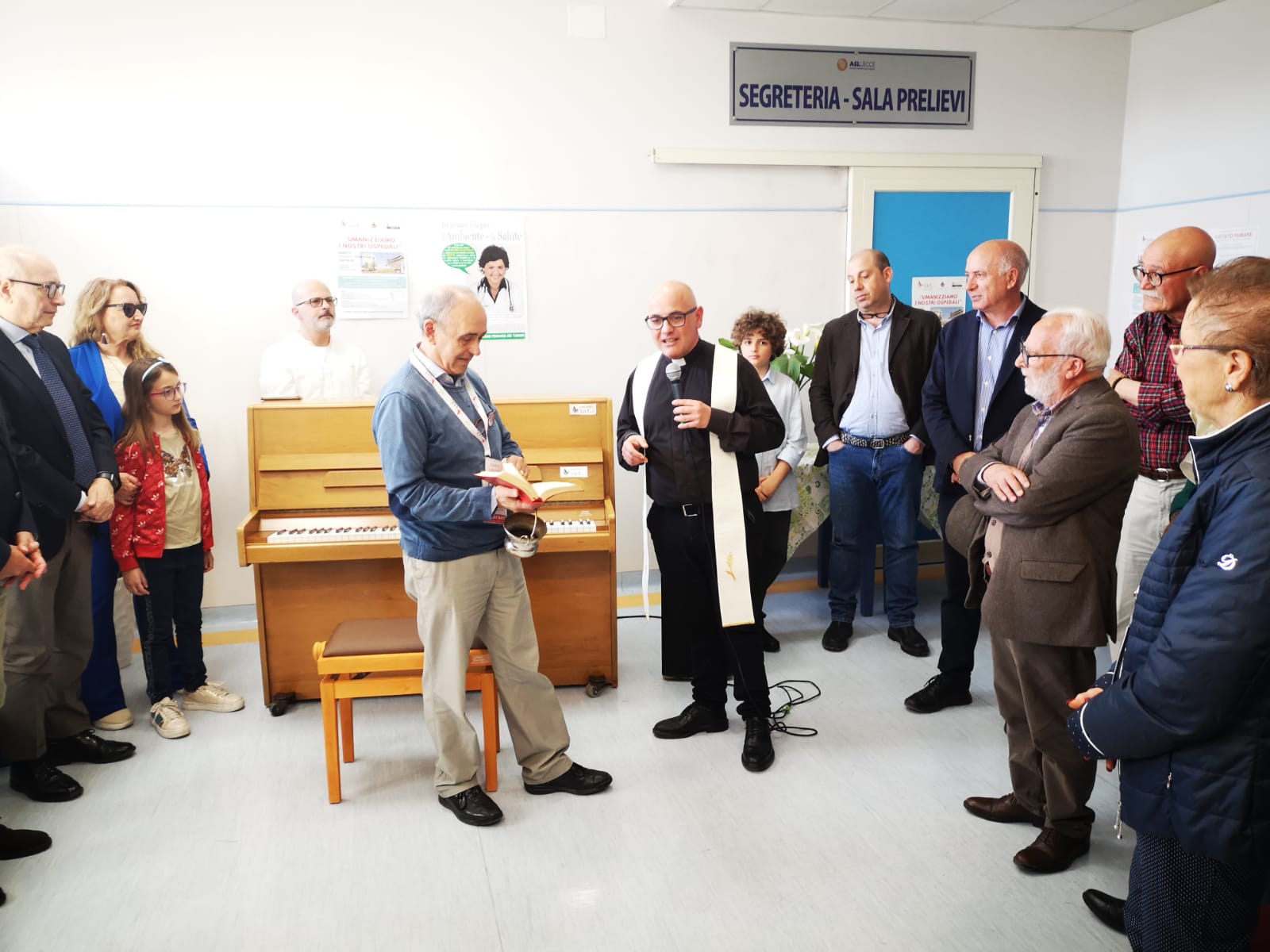 Il pianoforte, utilizzato già da tempo in reparto con grande apprezzamento da parte di pazienti e familiari, è stato benedetto dal cappellano don Quintino De Lorenzis.