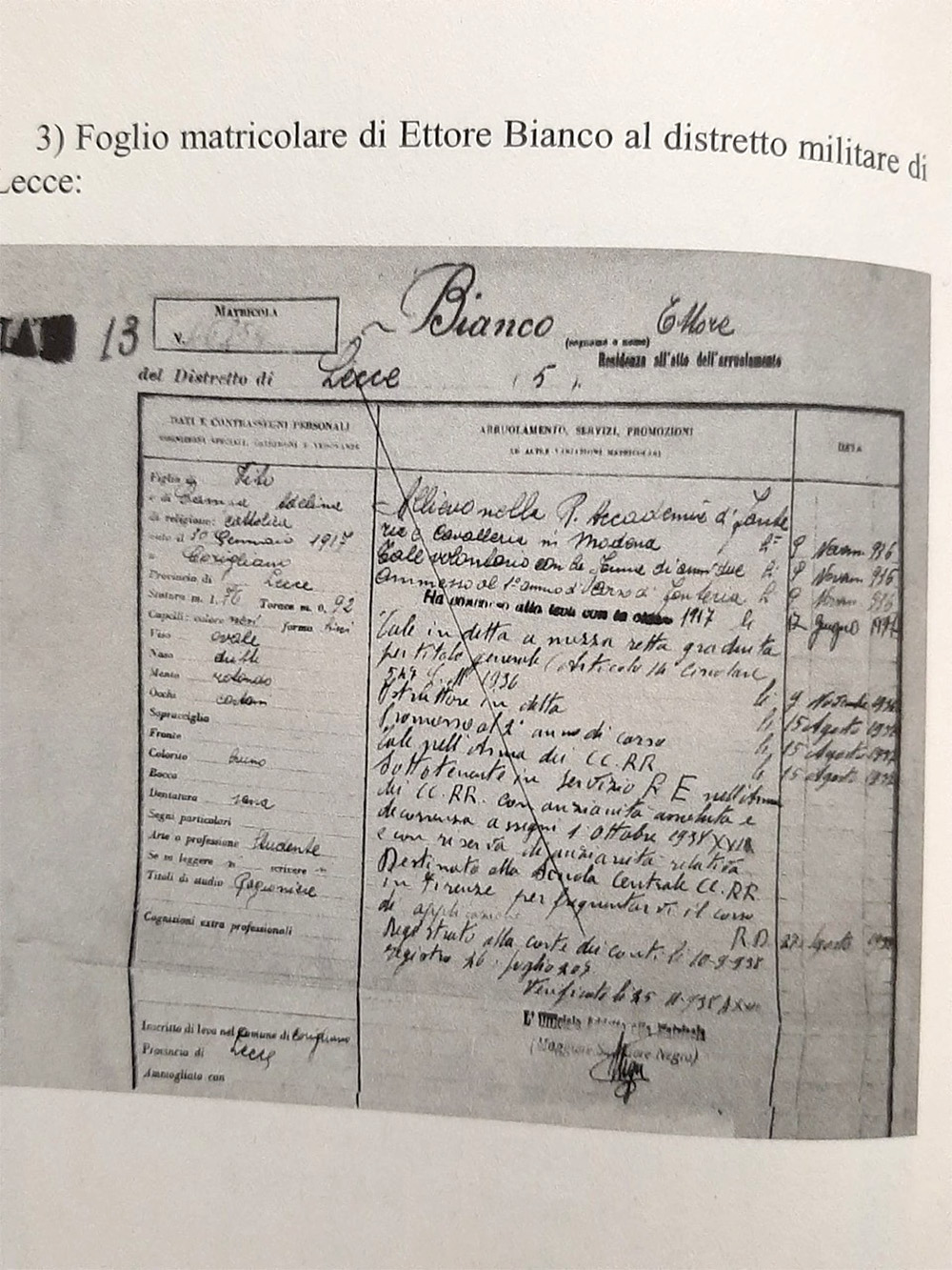 Celebrazioni e ricordo della figura del Capitano dei Carabinieri Ettore Bianco, nativo di Corigliano d’Otranto. Era e comandante in capo nella battaglia di Bosco Martese