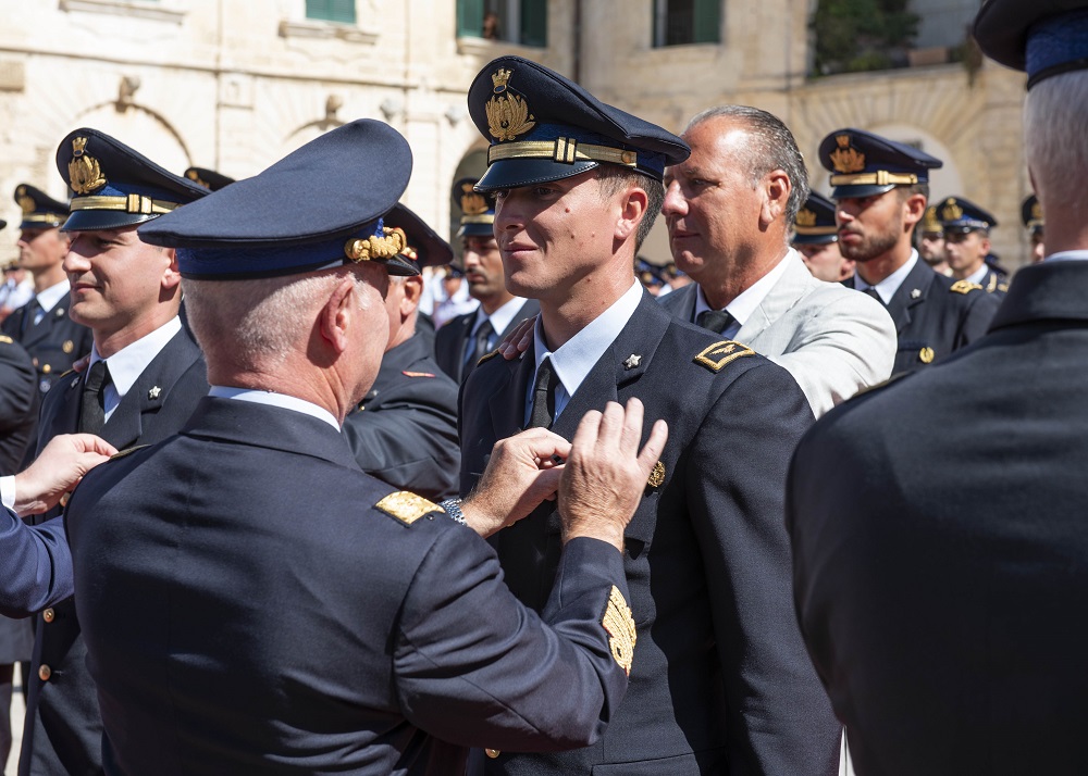 Il momento più significativo della cerimonia, la consegna delle “aquile”, è stato festeggiato dal passaggio di una formazione di quattro velivoli addestratori T-346A in dotazione alla Scuola di Volo salentina, utilizzati per la fase più avanzata dell’addestramento al volo dei piloti da caccia.