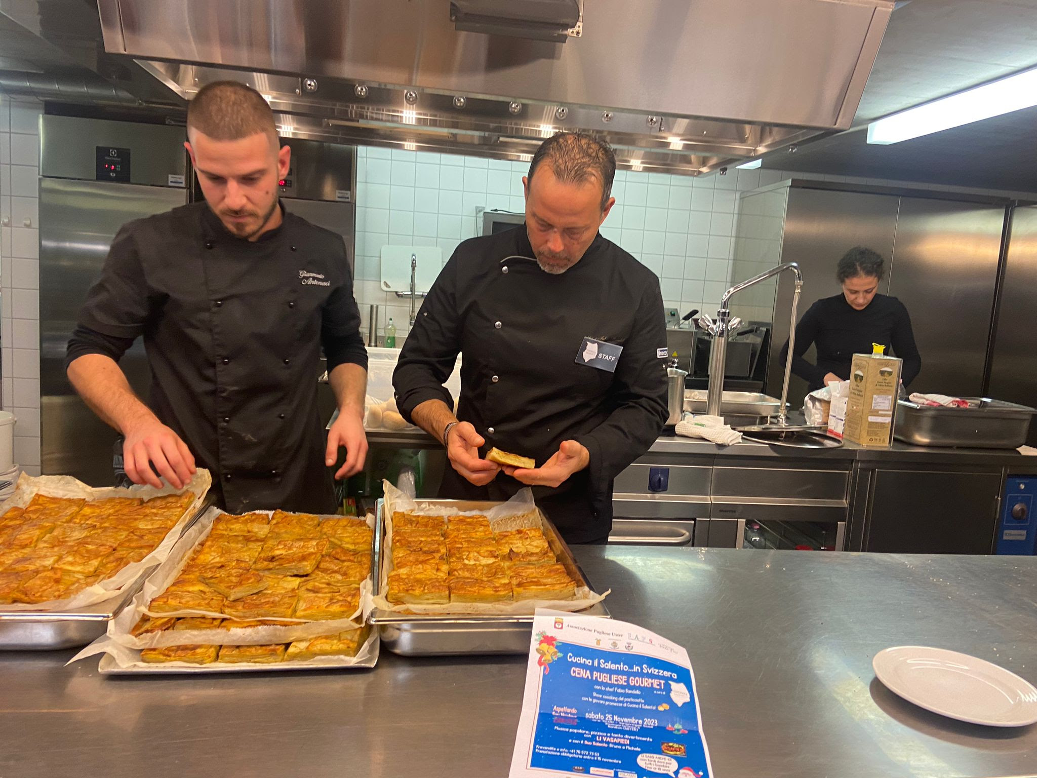 Pugliesi, italiani e cittadini svizzeri, coinvolti a vario titolo, in alcuni casi anche come collaboratori volontari, hanno dato vita, dunque, ad una serata unica e speciale: ottimo cibo arrivato direttamente dal Salento, prodotti autentici e genuini trasformati in piatti gourmet dallo chef Fabio Bandello e dagli aiuto chef Gianmario Antonaci e Maria Rita Scazzari, la musica popolare dei Vasapiedi e il clima delle belle feste tra amici.