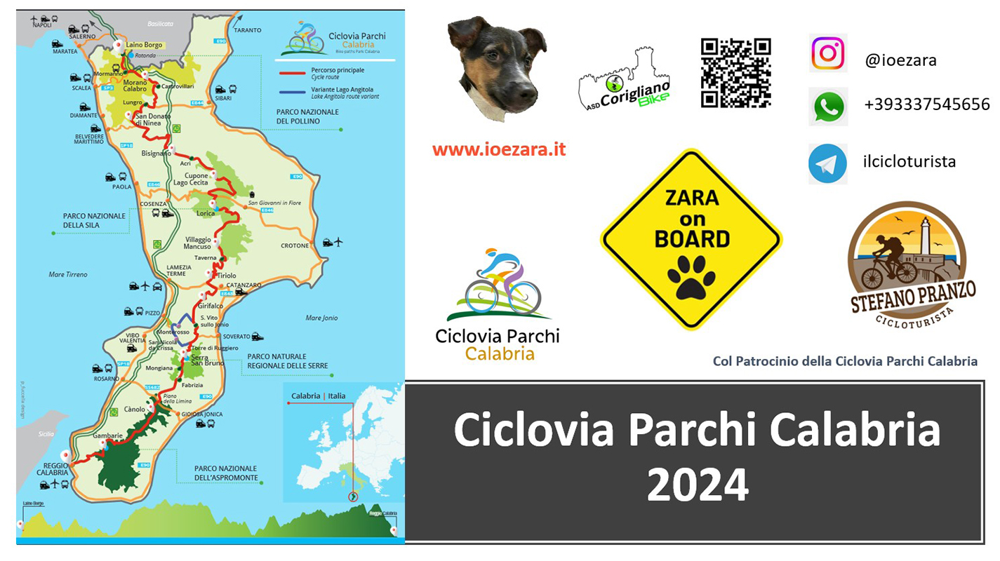 Da Laino Borgo, Stefano, un informatico di 49 anni, orginario di Castrignano dei Greci che vive e lavora a Lecce, appassionato di ciclismo ed innamorato della Calabria tanto da essere iscritto alla ASD Corigliano Bike, partirà per un’avventura unica lungo la Ciclovia dei parchi Calabria accompagnato dalla sua inseparabile compagna a quattro zampe, Zara, una vivace Jack Russel.