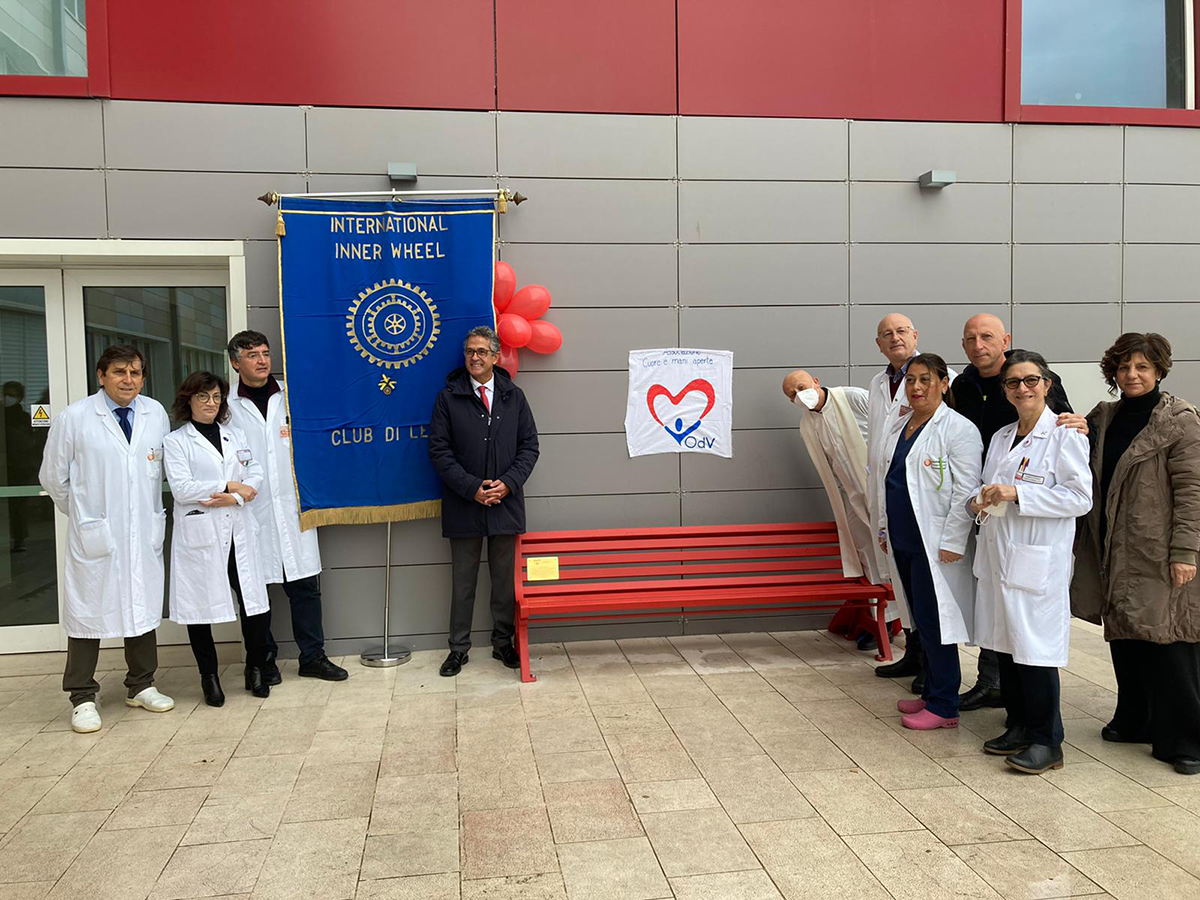 È stata, infatti, installata in mattinata una piccola panca su iniziativa di Don Gianni Mattia, cappellano del Presidio Ospedaliero “Vito Fazzi” di Lecce e presidente dell’Associazione “Cuore e mani aperte” OdV, che ha, grazie alle offerte dei propri sostenitori, acquistato, installato e donato il sedile ad ASL Lecce.