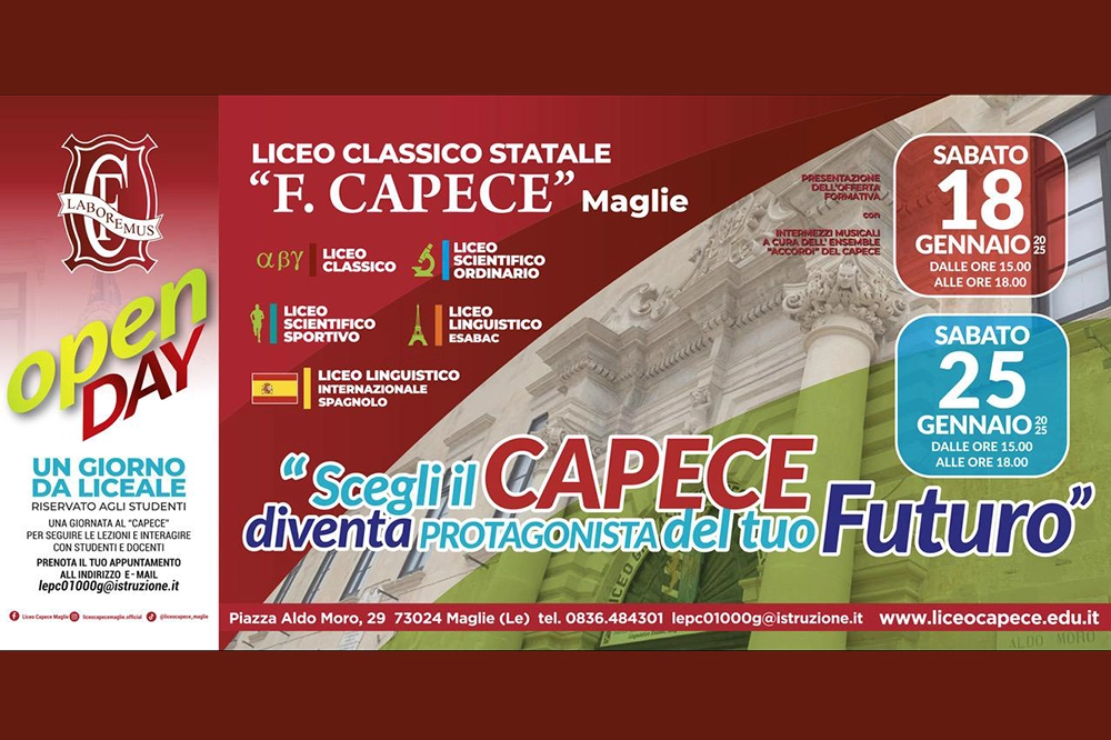 La dirigente scolastica Anna Antonica: «Durante questa fase dell’anno scolastico, fase che quest’anno a sorpresa si è dilatata, le famiglie sono chiamate a scegliere la Scuola per i propri figli. È un momento cruciale che vede l’esercizio della responsabilità genitoriale messo in seria difficoltà tra l’assecondare le inclinazioni e le richieste dei propri figli, qualche volta non condivise, o sostituirsi a loro e dirigere l’iscrizione verso la Scuola che più risponde al sogno di futuro che legittimamente ogni genitore fa per il proprio figlio. Consapevoli del travaglio psicologico dell’adulto, ma ancora più convinti di poter soddisfare le esigenze e sviluppare le potenzialità dei ragazzi, sicuri di saper individuare i talenti e, soprattutto, fermi nell’ idea di una scuola che, in un contesto ricco di storia, quale è il Palazzo Capece, sa guidare il ragazzo alla costruzione della sua Storia, invitiamo le famiglie e gli studenti a venire a conoscerci, a capire la ricchezza della nostra offerta formativa, che affonda le radici nella tradizione, ma che è proiettata in una dimensione globale e mondiale».