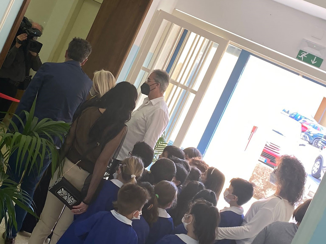 Taglio del nastro con la dirigente scolastica Maria Abbondanza Baglivo, il sindaco Michele Sperti ed il prof. Gregorio Campi