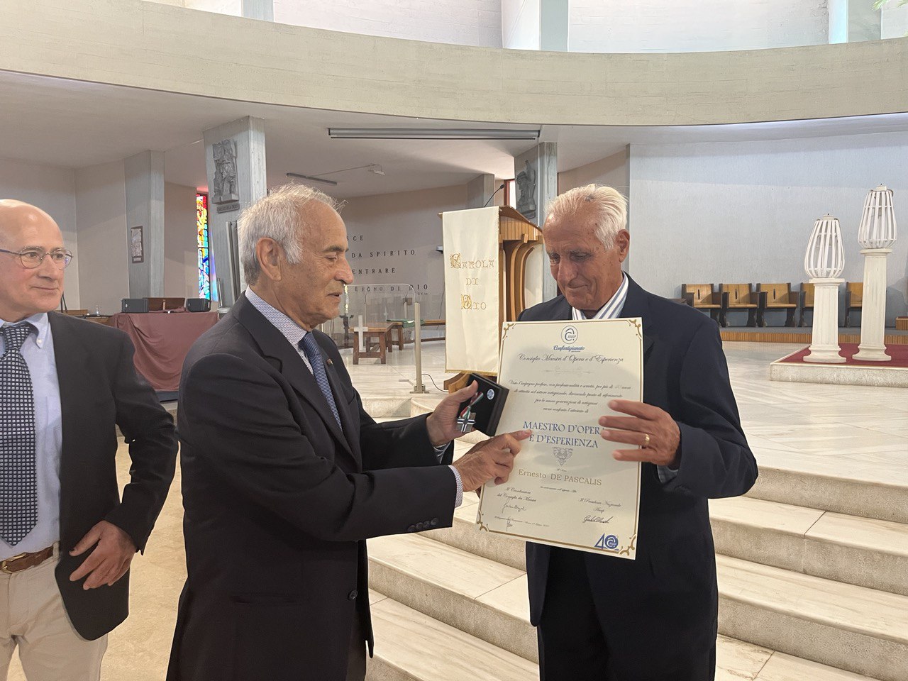 Poco prima della celebrazione della Santa Messa, officiata da Mons. Nicola Macculi, presso la Basilica di San Domenico Savio a Lecce, sono stati conferiti gli attestati di “Maestri d’Opera e d’Esperienza” a 7 artigiani per la professionalità e serietà con cui hanno portato avanti la loro attività nel settore artigianale. Un riconoscimento per essere stati un punto di riferimento per le nuove generazioni di artigiani.