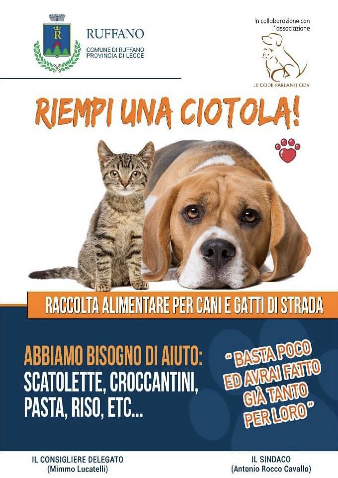 Attività che si unisce ad altre iniziative. Una di queste è “Riempi una ciotola“, ed è già in atto. Si tratta di una raccolta di generi alimentari per cani e gatti di strada cui tutti possono unirsi attraverso una libera donazione.