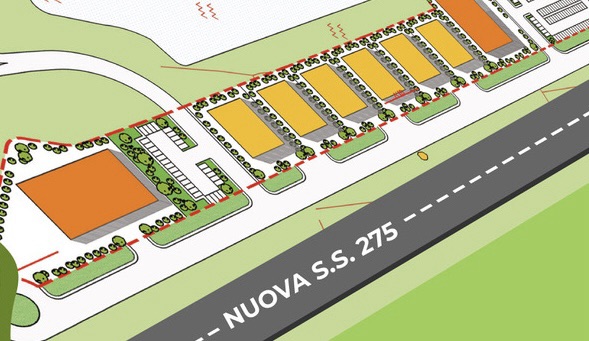 L’area è già dotata di opere di urbanizzazione primaria e secondaria, parcheggi e viabilità di supporto e gode di una posizione strategica e di grande visibilità lungo il nuovo tracciato della SS 275.
