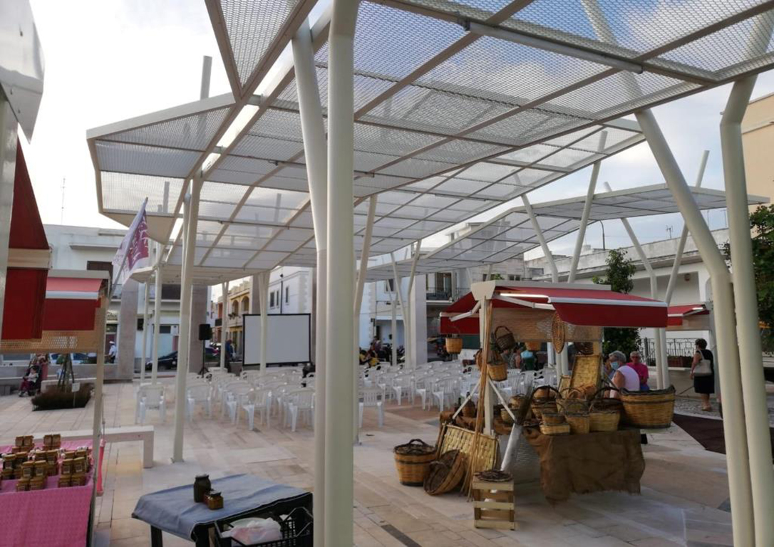 Il progetto ha permesso di riqualificare la piazza con l’inserimento di una copertura, con lo scopo di farne un luogo di socialità, oltre che di esposizione e vendita di prodotti tipici, promozione delle aziende che operano nel settore agricolo e agroalimentare, valorizzazione dell’artigianato, dei servizi e del turismo esperienziale.