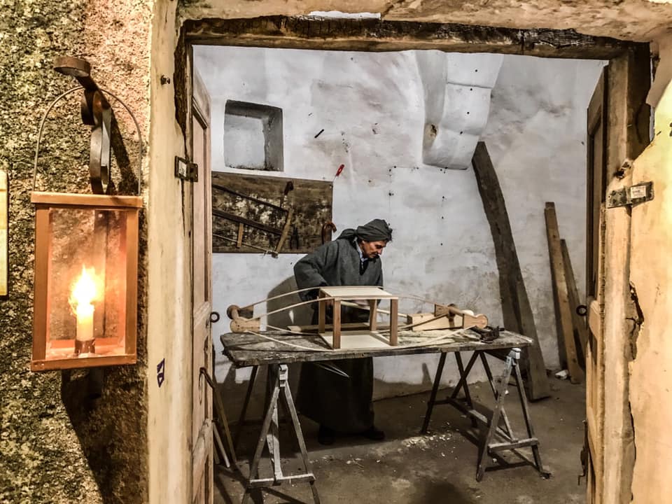 Partendo da Piazza Sant’Oronzo, tra soldati romani, pastori, colorate bancarelle di frutta e ortaggi, passo dopo passo si raggiungono le abitazioni intorno a Palazzo Coluccia, per poi scoprire in Piazza del Popolo, un ruscello realizzato dove l’acqua scorre verso le viuzze del centro antico, rimanendo poi affascinati dalla Natività nell’atrio di Palazzo Risolo.