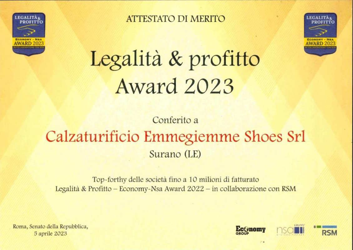 Premio “Legalità & Profitto” alla Emmegiemme Shoes