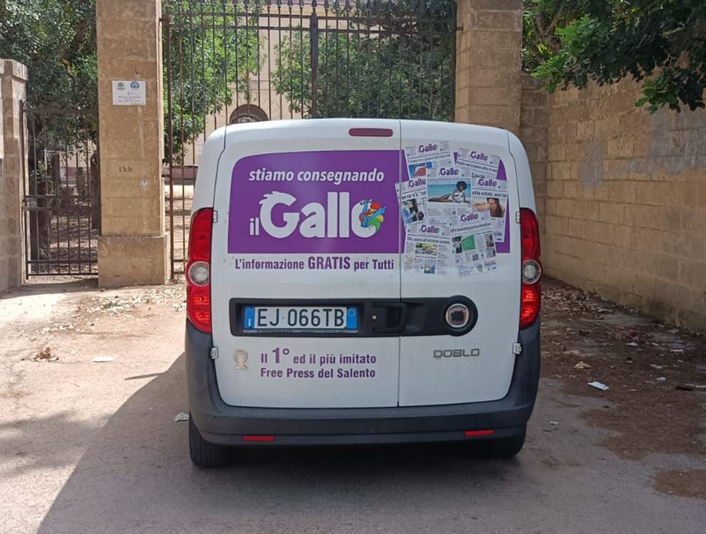 Il furgoncino de “il Gallo” pronto per la distribuzione del numero dedicato al Consorzio Agrario Cooperativo del Capo di Leuca