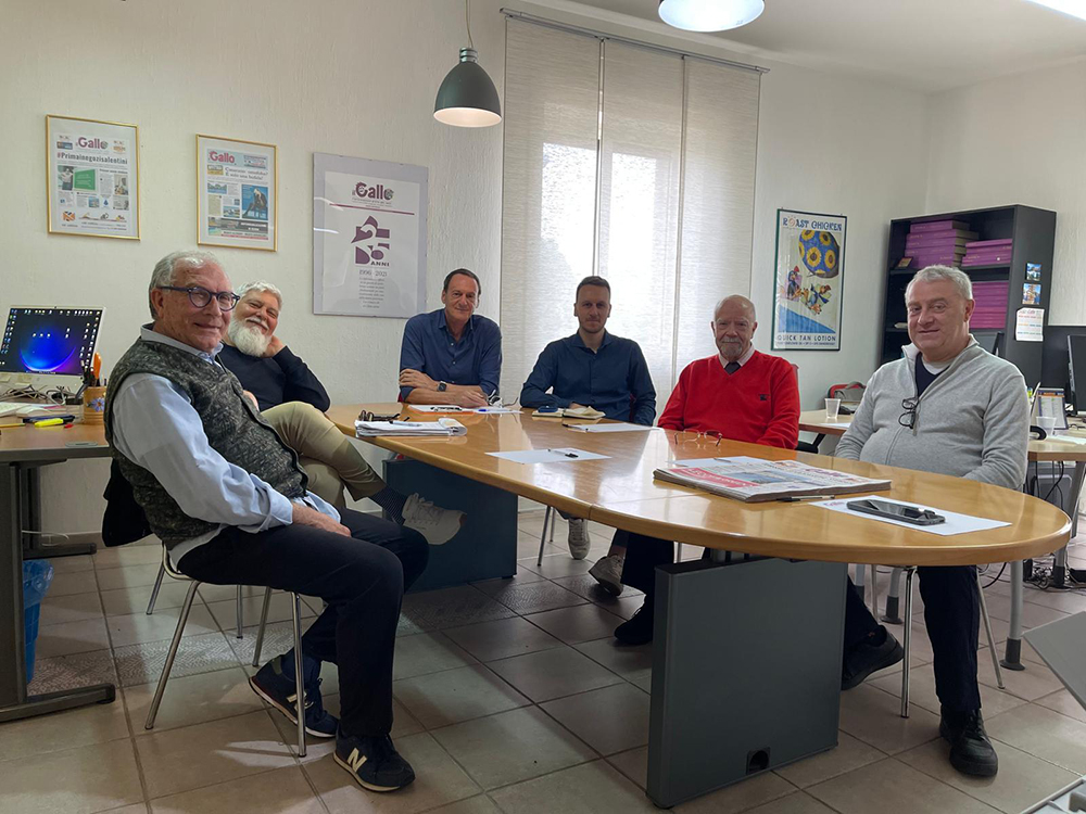 Riunione di Redazione per preparare il numero unico sull’Acait. Intorno al tavolo delle riunioni, da sinistra: Ercole Morciano, Giuseppe Cerfeda, Luigi Zito, Lorenzo Zito, Hervé Cavallera e Ninì Maggiorano