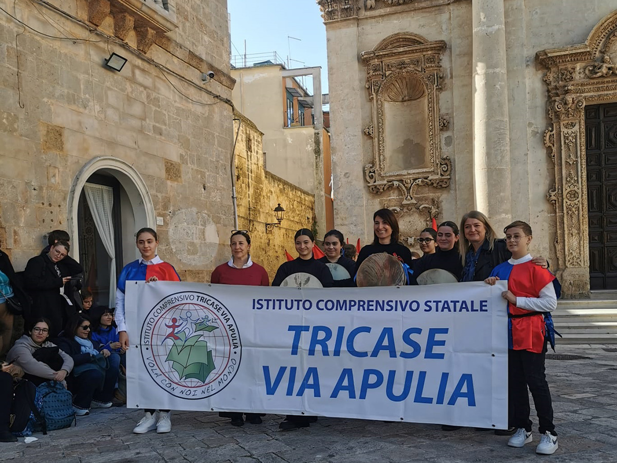 L’Istituto comprensivo “Tricase – Via Apulia”, con i suoi sbandieratori e le sue tamborre, ha aperto la cerimonia di inaugurazione regionale dell’Anno scolastico 2023/24, svoltasi quest’oggi a Mesagne (Br), dando il via alle manifestazioni di tutte le altre scuole selezionate e coinvolte.