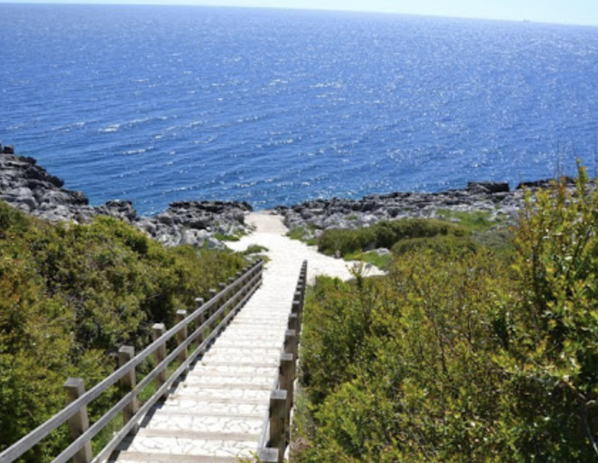 Una via ferrata, nell’insenatura che va da “Grotta Matrona” verso la Marina di Tiggiano, in fune in acciaio inox».