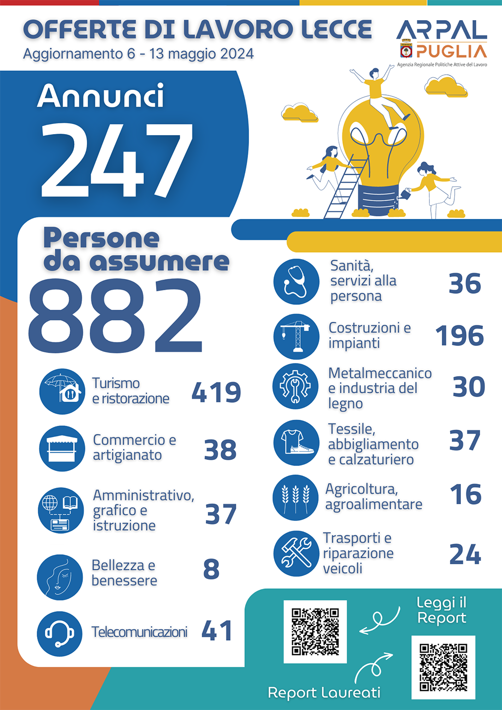 Le offerte nel settore crescono anche nel quindicesimo Report settimanale, che conta 247 annunci, per un totale di 882 posti disponibili.