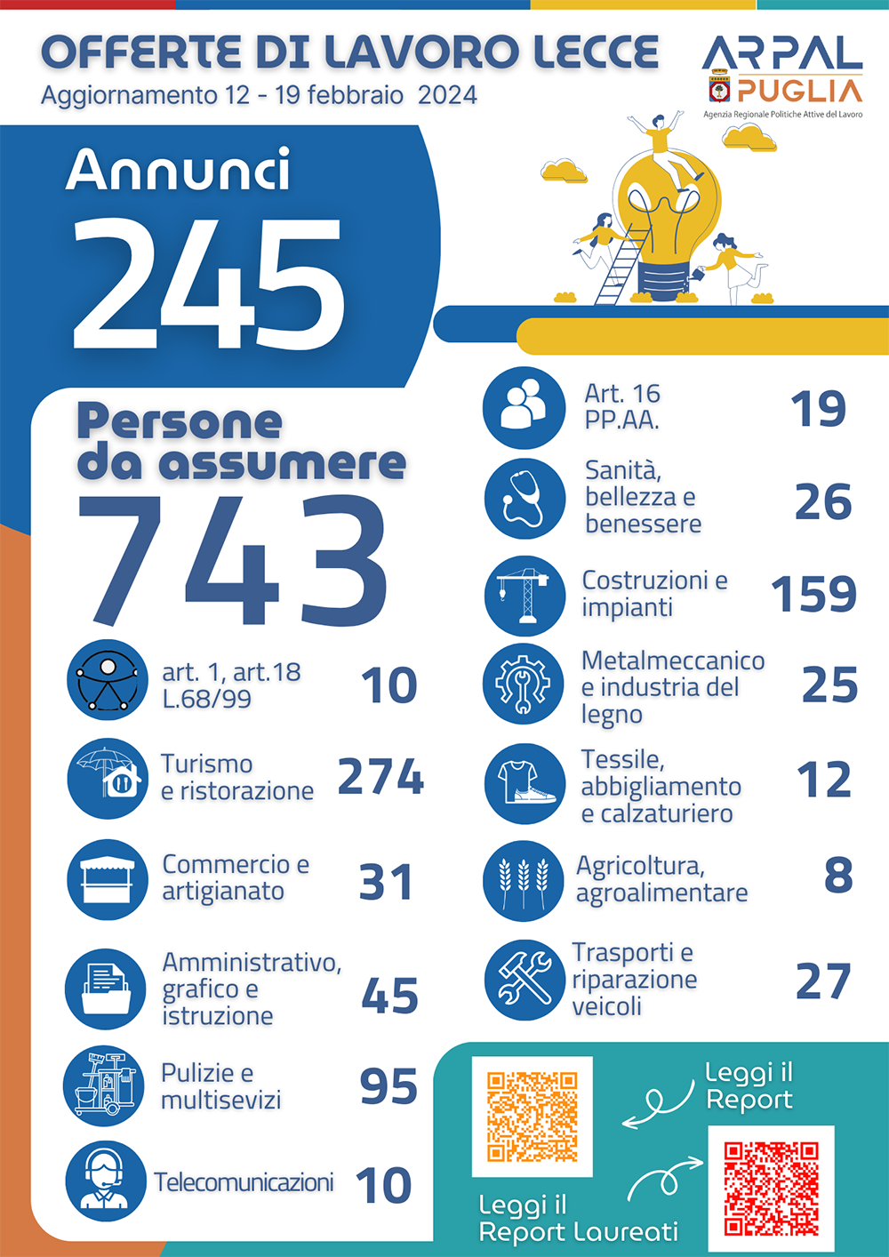 Nel sesto Report delle offerte di lavoro si contano 245 annunci, per un totale di 743 posti disponibili in tutta la provincia.