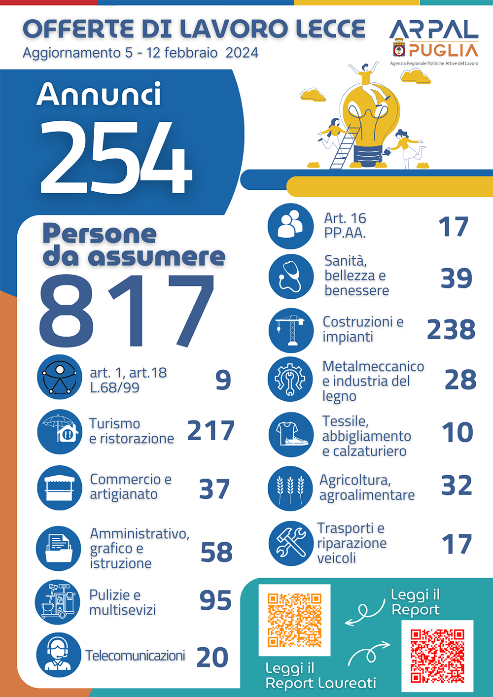 817 lavoratori ricercati, il 5° Report 2024 relativo alle offerte di lavoro dell’Ambito di Lecce di ARPAL Puglia