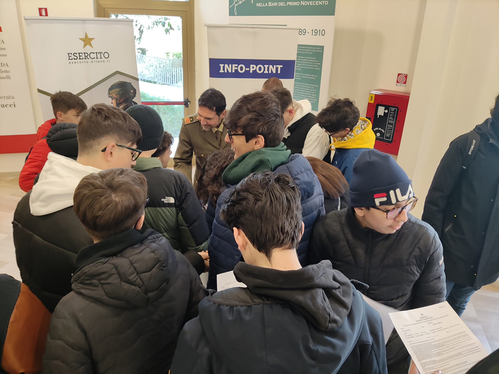 Il CME Puglia ha organizzato una lezione sulla Storia Patria, la Costituzione e il nostro Inno nazionale. Il Colonnello (originario di Tricase) Arcangelo Moro ha rimarcato l’importanza che l’Esercito riveste nel “Sistema Paese” ed esposto ai giovani il nuovo modello di reclutamento della Forza Armata