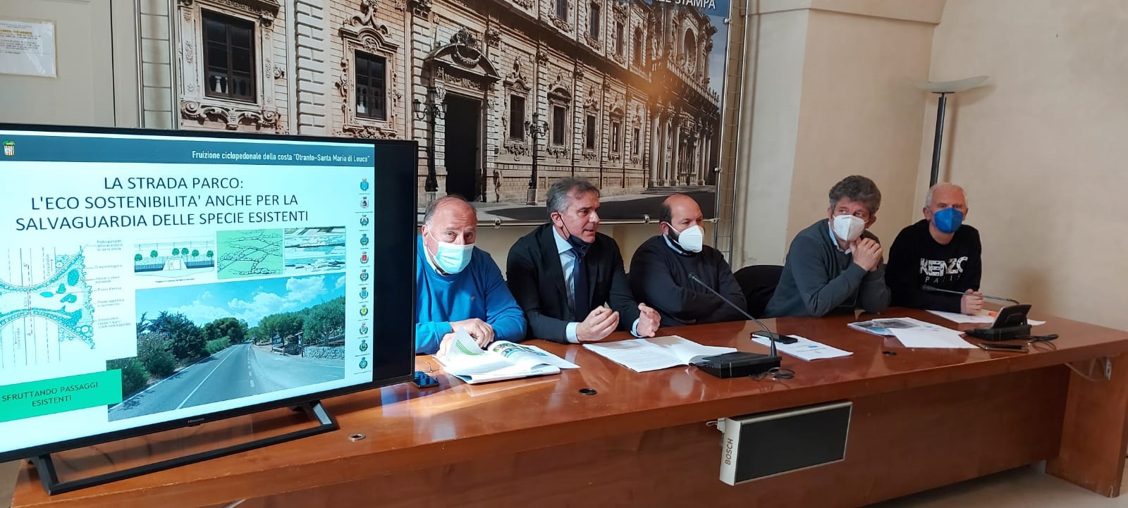 Ad illustrare i dettagli dell’ambizioso progetto, che punta a trasformare la litoranea adriatica del Salento, già individuata come “strada parco”, in un “lungomare panoramico” da percorrere lentamente e in sicurezza, anche in bici e a piedi, sono intervenuti il presidente della Provincia di Lecce Stefano Minerva, il consigliere provinciale delegato alle Politiche di valorizzazione del litorale adriatico e Pianificazione della viabilità Ippazio Morciano, il direttore generale Gianni Refolo, il dirigente del Servizio di Governance Strategica e Pianificazione territoriale Roberto Serra e il dirigente del Servizio Viabilità ed Espropri Luigi Tundo.