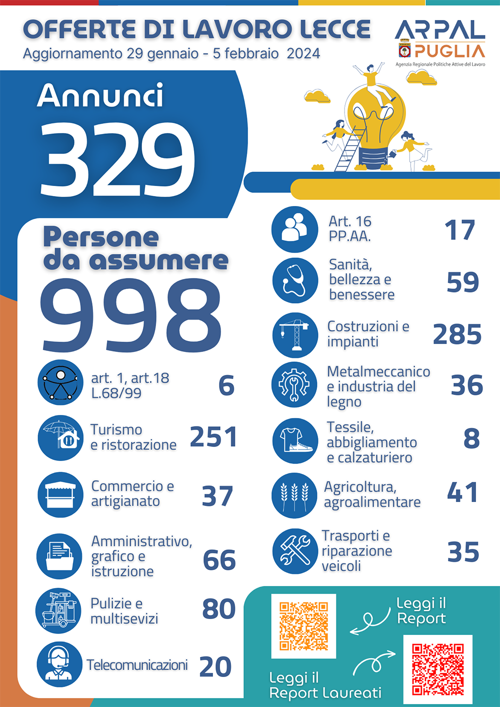 Quarto Report Arpal 2024: 998 lavoratori ricercati, 100 corsi gratuiti in dattilografia e un Recruiting Day a Maglie