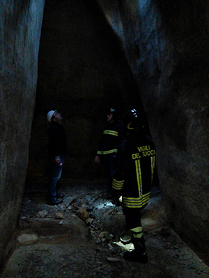 A pochi metri di distanza un’altra ampia stanza, con ogni probabilità una cisterna, risalente ad almeno due, trecento anni fa, ispezionata dai tecnici con l’aiuto dei vigili del fuoco del distaccamento di Tricase coordinati dal caposquadra esperto Cosimo Monsellato, che hanno provveduto alla sicurezza di coloro che sono scesi per il primo sopralluogo.