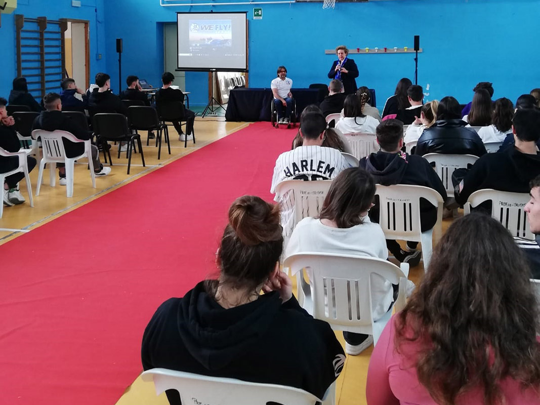 Gli studenti dell’I.I.S.S. “Don Tonino Bello” di Tricase e del “Nino Della Notte” di Poggiardo hanno incontrato Marco Cherubini primo pilota disabile italiano a conseguire la licenza PPL in Italia. La dirigente scolastica Anna Lena Manca: «Ci ha insegnato che per volare le ali si possono costruire anche se siamo nati senza»