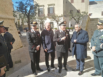Il primo cittadino ha incontrato nel suo ufficio di Palazzo Gallone i vertici dell’Arma e della Guardia di Finanza, tra cui:il Generale di Brigata Giovanni Cataldo, Comandante regionale dei Carabinieri; il Generale di Divisione Vito Augelli, comandante regionale Guardia di Finanza; i comandanti provinciali Colonnello Giampaolo Zanchi (Carabinieri) e Colonnello Bruno Salsano (Guardia di Finanza); Il comandante della Compagnia dei Carabinieri di Tricase, Cap. Alessandro Riglietti e quello della Tenenza della Finanza, Ten. Salvatore Pezzella; il direttore dell’Agenzia del Demanio di Puglia e Basilicata, Vincenzo Capobianco e quello provinciale Fedele Gentile.