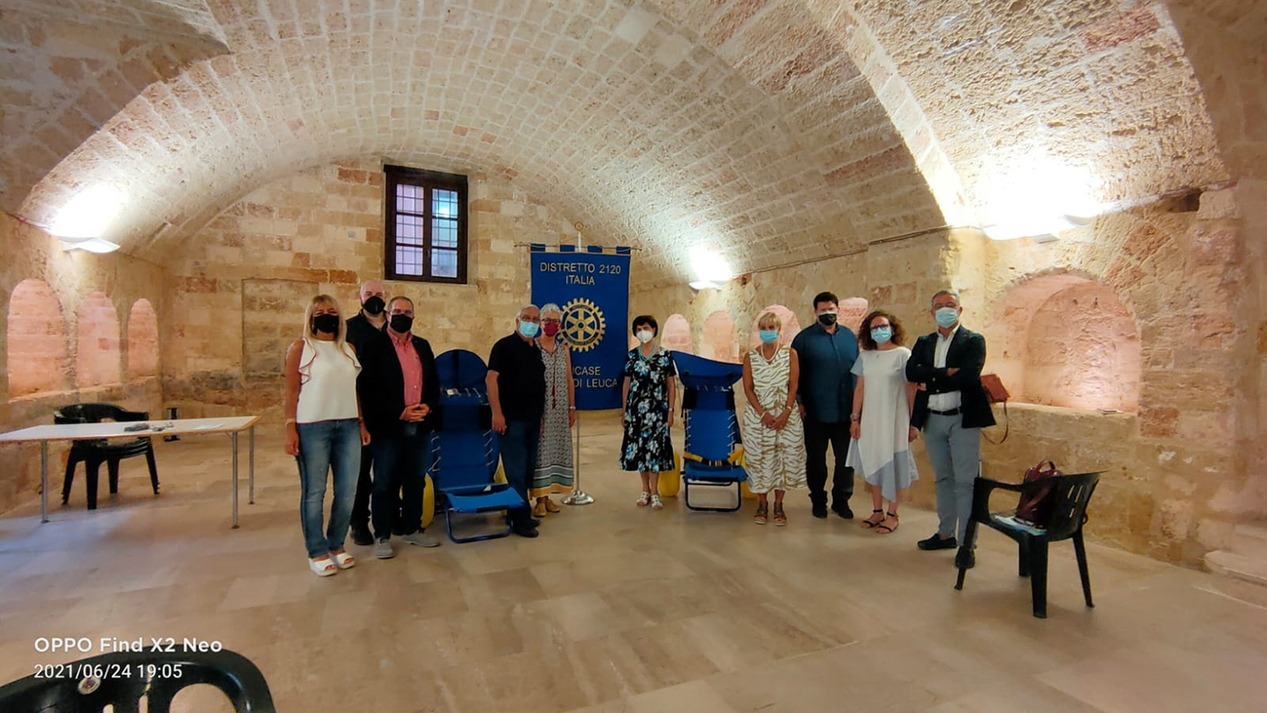 Mentre il Comune di Tricase ha provveduto all’affidamento dei lavori, la presidente del Rotary Federica Mitolo De Donno ha consegnato nelle mani del sindaco Antonio De Donno due sedie da mare per disabili JoB che ha donato al Comune di Tricase.