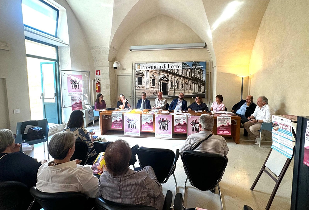 Il programma completo delle iniziative è stato presentato questa mattina a Palazzo Adorno a Lecce. Sono intervenuti: Giuseppe Serravezza, oncologo, responsabile scientifico LILT Lecce; Stefano Minerva e Fabio Tarantino, rispettivamente presidente e vice presidente della Provincia di Lecce; Stefano Rossi e Maria Nacci, rispettivamente direttore generale e direttore sanitario della ASL di Lecce; Maria Giovanna Nuccio per l’Ordine provinciale dei Farmacisti di Lecce; Simonetta Pepe, responsabile del progetto “Farmacie in rosa” per Federfarma Lecce e componente del Direttivo LILT Lecce; Antonio Marchetti, presidente Sunifar Lecce (Sindacato unitario dei farmacisti rurali); Manuela Colazzo, biologa nutrizionista.