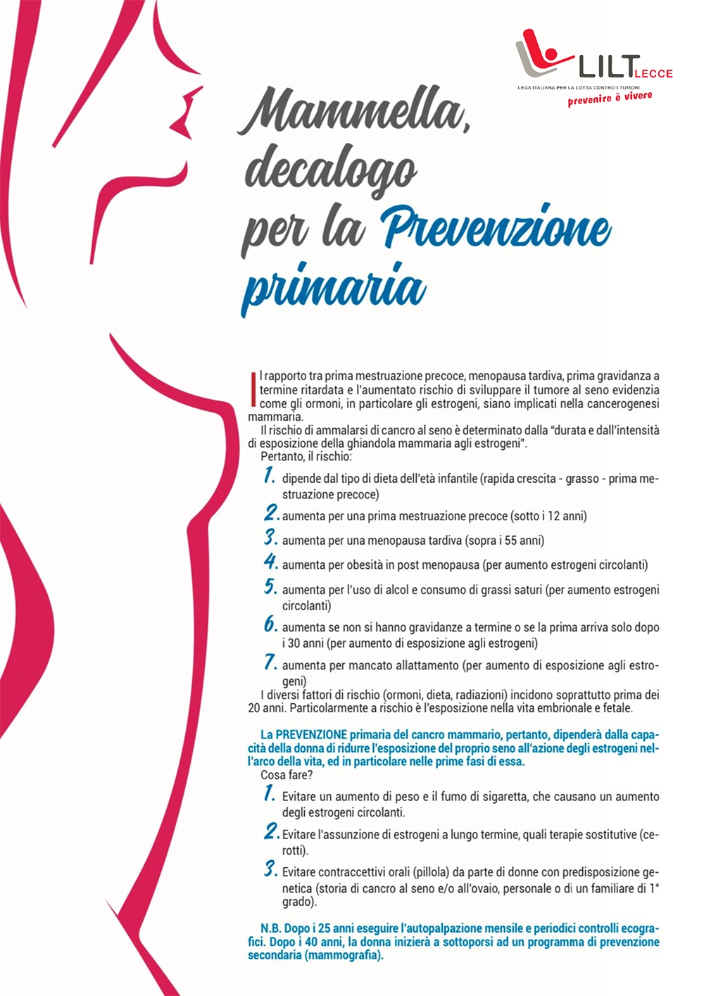 Mentre alcuni fattori di rischio, come l’età e la familiarità, non sono modificabili, uno degli obiettivi principali della campagna “LILT for Women – Nastro Rosa” è, invece, quello di sensibilizzare le donne sui fattori di rischio modificabili, grazie a una maggiore consapevolezza e corretta informazione.