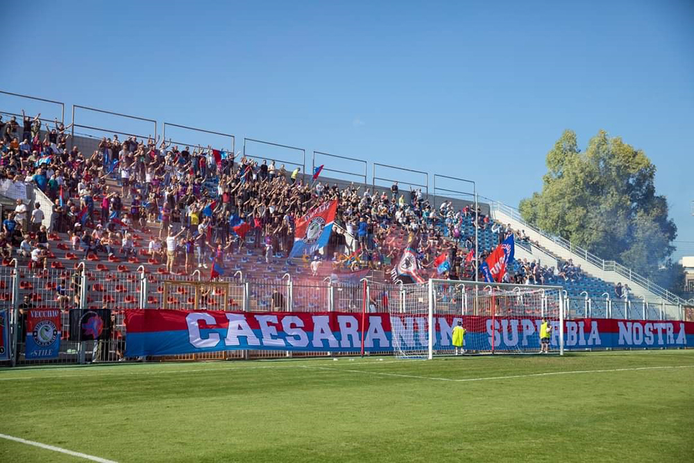 La curva Nord con lo striscione “Caesaranum superbia nostra”