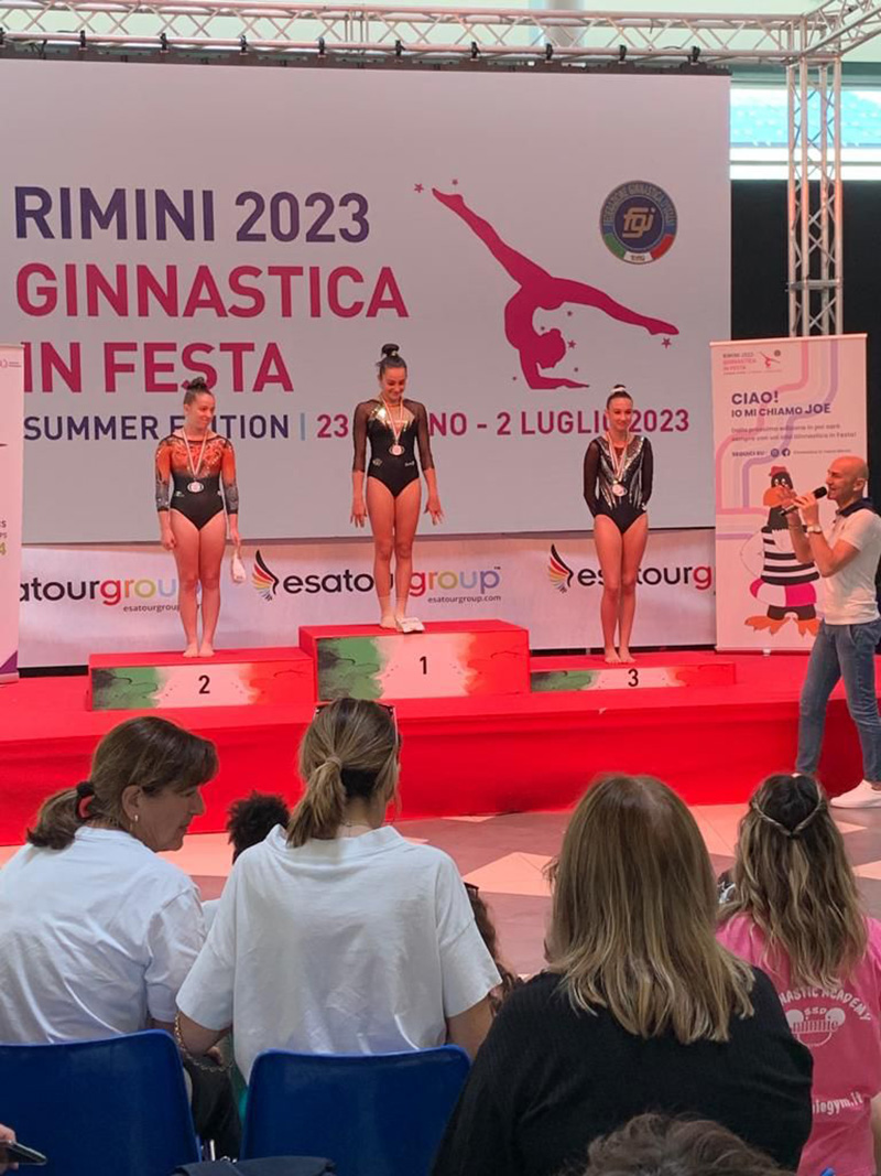 Al Campionato Nazionale di Ginnastica Artistica della Federazione Ginnastica d’Italia disputato a Rimini dal 23 giugno al 2 luglio.