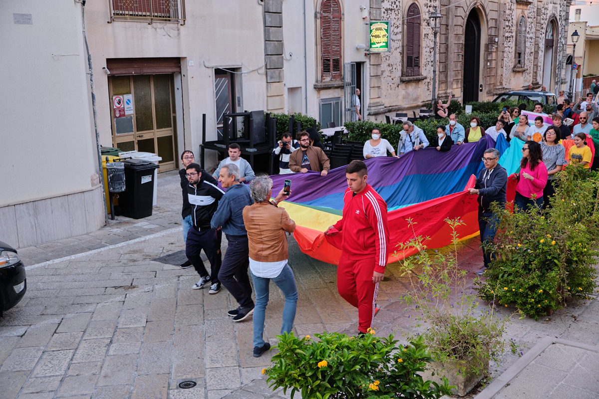 Partita dalla tomba di Don Tonino Bello e giunta fino al Monte Bianco, la bandiera ha attraversato tutte le regioni italiane e ha fatto tappa a Miggiano.